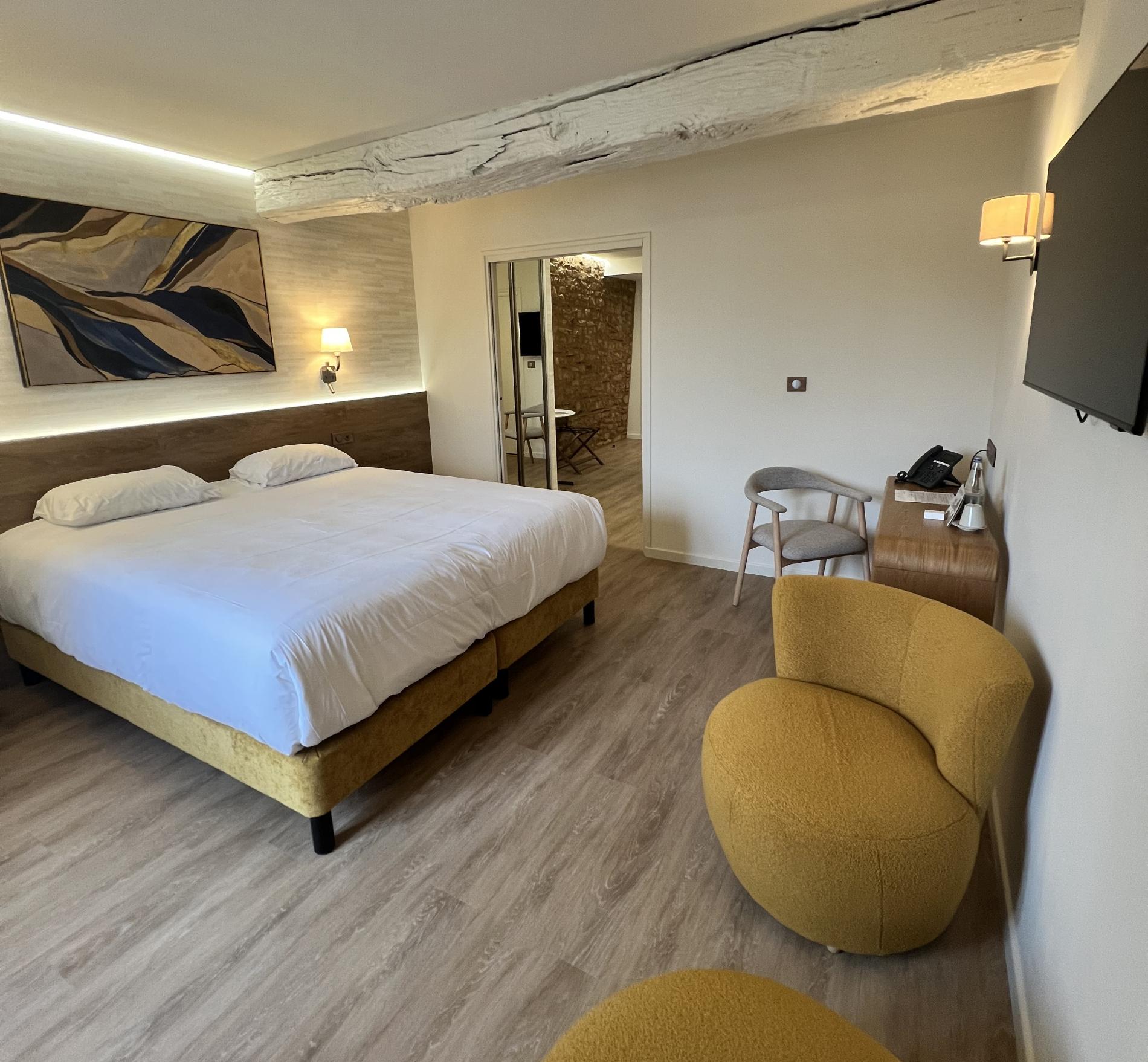 Salle de Bain avec Douche direct jardin et Vasque en Pierre, WC Séparé.